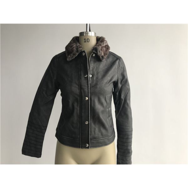 Levis Ladies' Charcoal Pleather Jacket With Detachable Sherpa Collar LEDO1741 Images |