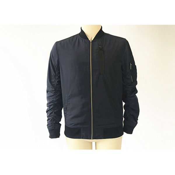 Mens Navy Blue Bomber Jacket With Tape On Front Chest Exstreamed On Sleeve TW80712 Images |