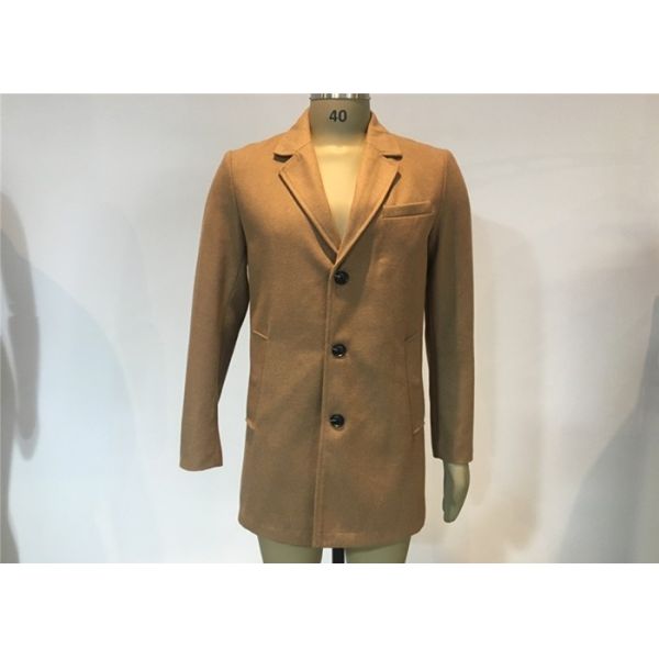 Camel Long Mens Medium Trench Coat Wool Winter Coat With Lapel Collar Images |
